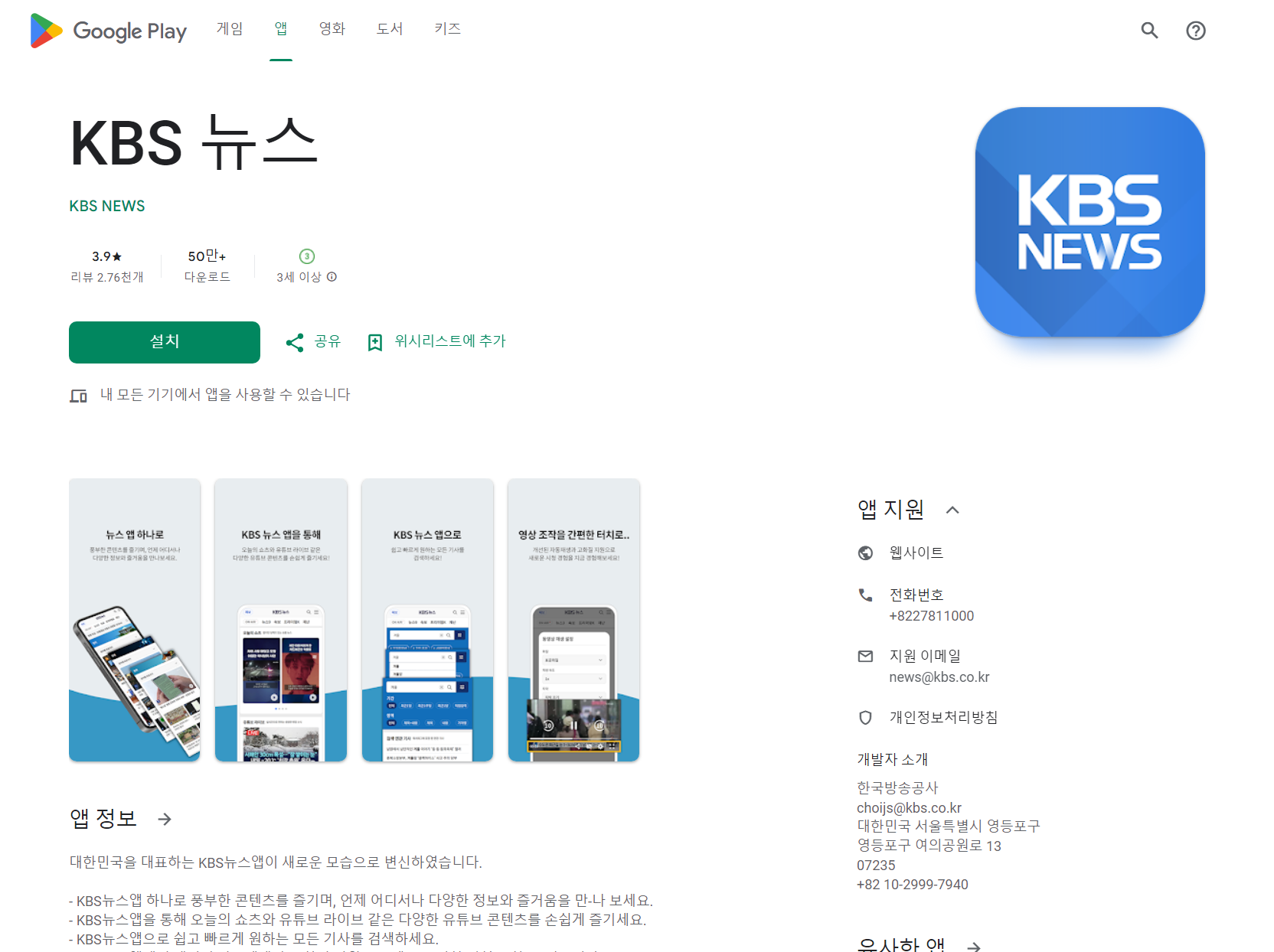 kbs실시간 뉴스 보기 KBS 뉴스 앱은 3세 이상 사용 가능하며, 50만 이상의 다운로드 수를 기록하고 있으며, 사용자 평점은 3.9로, 많은 사용자들이 긍정적인 평가를 하고 있습니다. 이 글에서는 KBS 뉴스 앱의 핵심 정보와 사용 후기를 자세히 살펴보겠습니다.